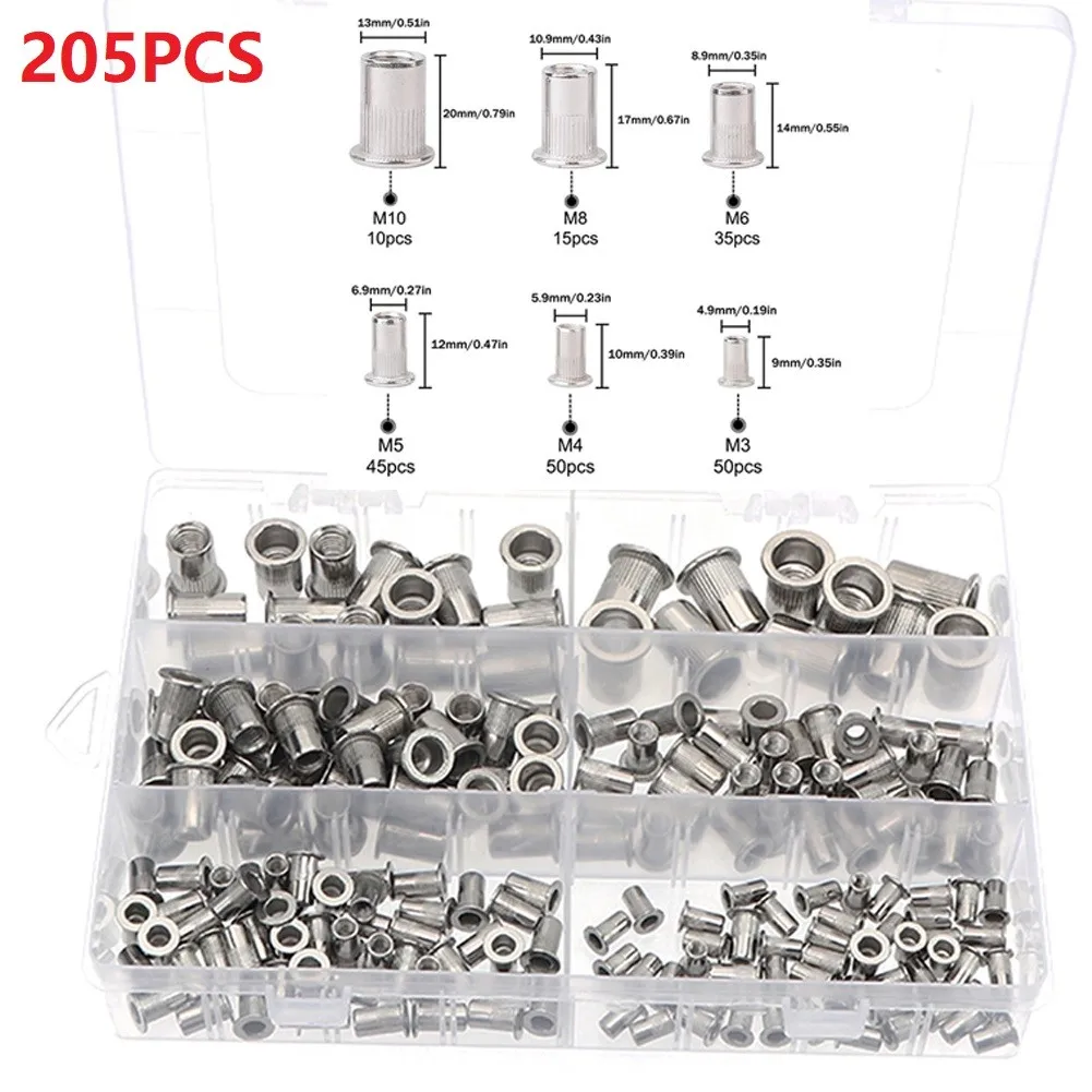 cheap!!!- 205Pcs Flat Head Threaded Riveter Nut M3-M10 Stainless Steel Zinc Plated Rivnut Zinc Plated Rivet Aluminum Insert Nutsert Kit