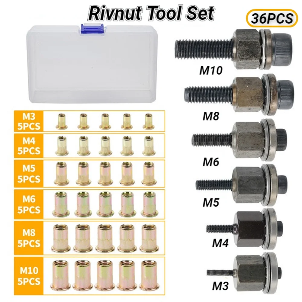 cheap!!!- Manual Rivet Gun Tool Set M3/M4/M5/M6/M8/M10 Simple Installation Carbon Steel Rivnut Tool Set Including Rivet Head and Nut