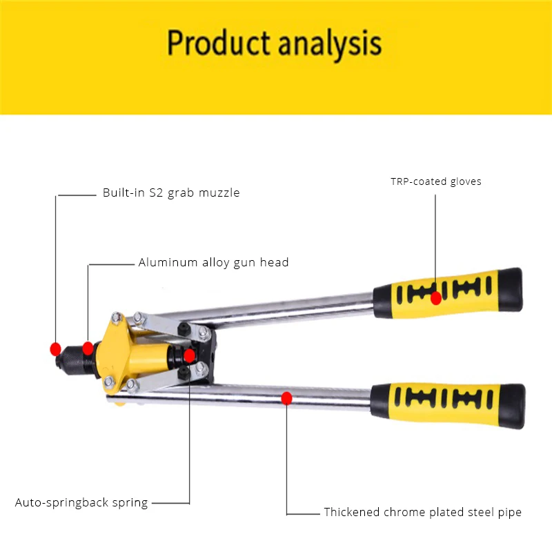Rivet Gun Manual Double Handle Rivet Gun Pull Cap Gun Labor Saving Pull Manual Tool Non-Slip Labor-Saving Rivet Tool original Price($) 26.33 salePrice($) 26.33