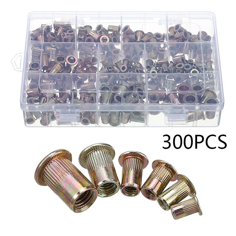 300Pcs Aluminum Rivet Nut Zinc Plated Steel Nutsert Assortment Kit Metric SAE Flat Head Threaded Rivet Insert Nutsert Cap Tools original Price($) 29.33 salePrice($) 17.6