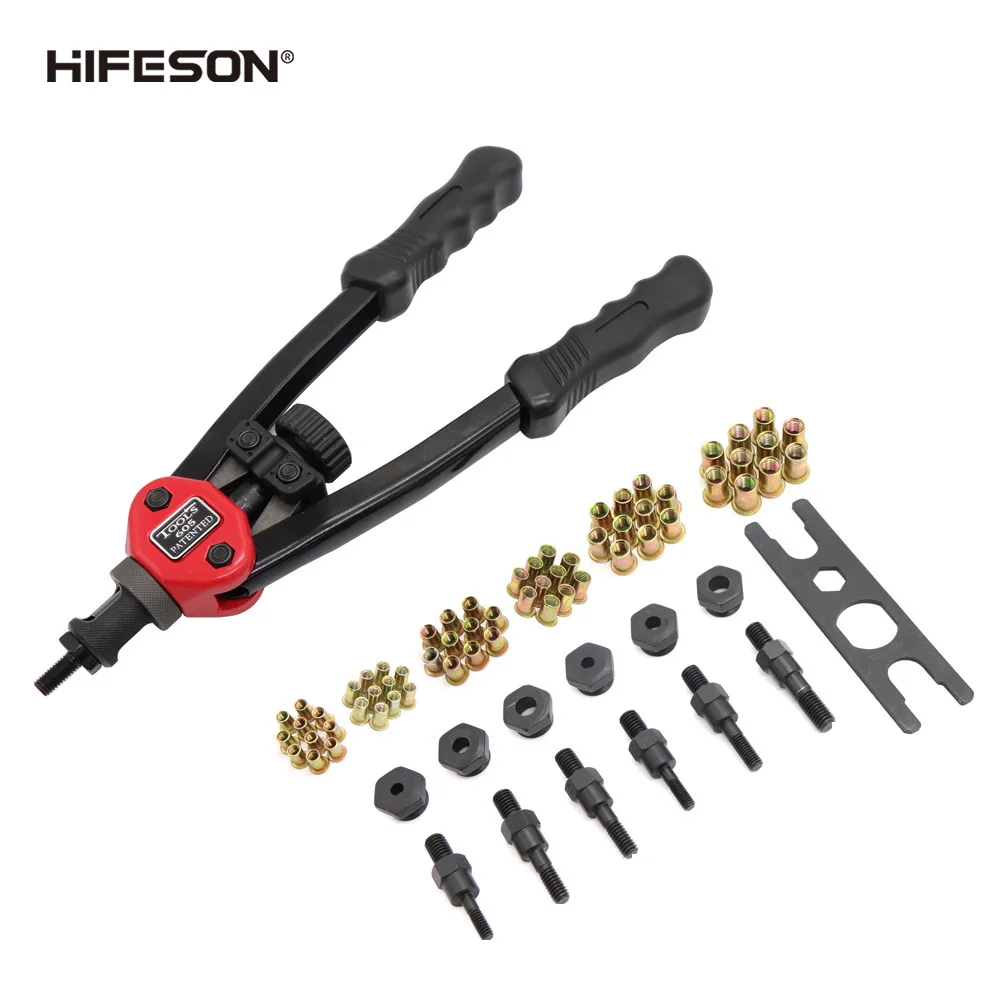 cheap!!!- HIFESON 605 Hand Threaded Rivet Nut Gun with 60PCS Iron Nuts Double Insert Manual Riveter for M3/M4/M5/M6/M8/M10