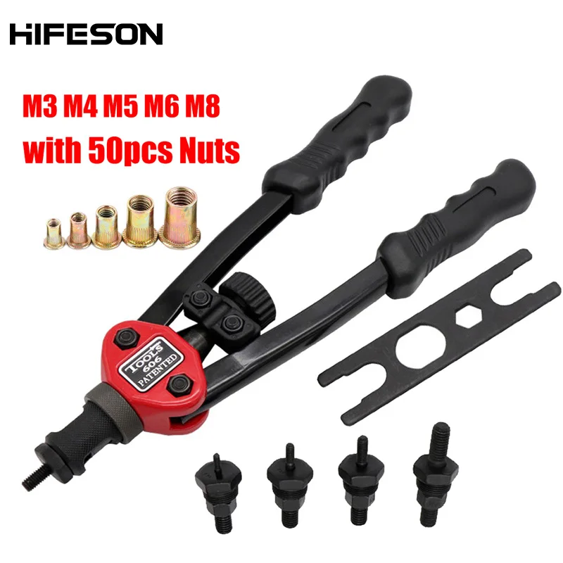 cheap!!!- 12'' Hand Threaded Rivet Nut Gun With 50 pcs nuts 606 Insert Manual Riveter Riveting Rivnut Tool for M3 M4 M5 M6 M8