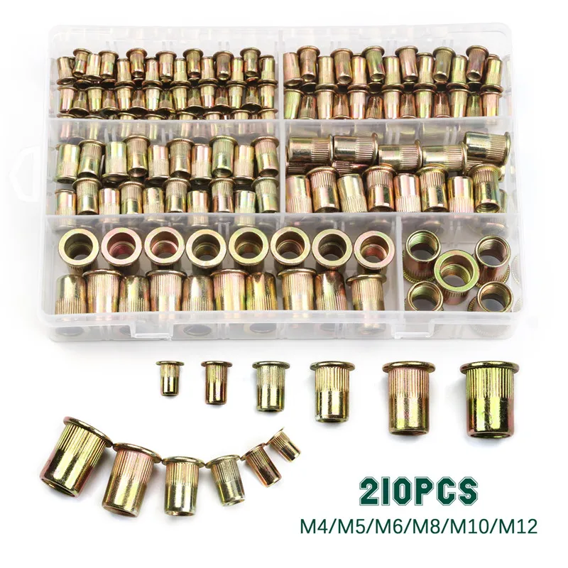 cheap!!!- 210/165/100PCS Carbon steel Rivet Nuts M4 M5 M6 M8 M10 M12 Flat Head Rivet Nuts Set Nuts Insert Reveting Multi Size Collocation