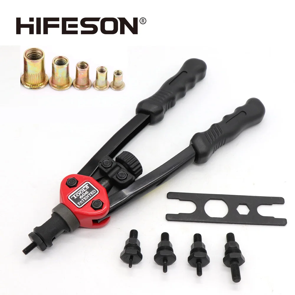 cheap!!!- HIFESON Hand Threaded Rivet Nut Gun With 50 pcs Nuts 606 Insert Manual Riveter Riveting Rivnut Tool for M3 M4 M5 M6 M8 Nuts