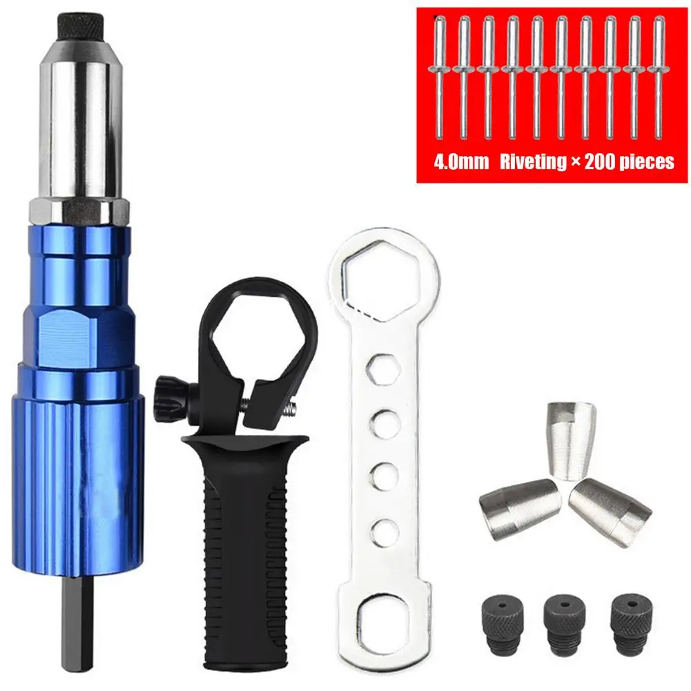 cheap!!!- Nut Pull Rivet Tool Electric Rivet Gun With Non-slip Handle Riveter Tool Kit 2.44 8mm Rivet Nut Gun Drill Adapter Rivet Tool
