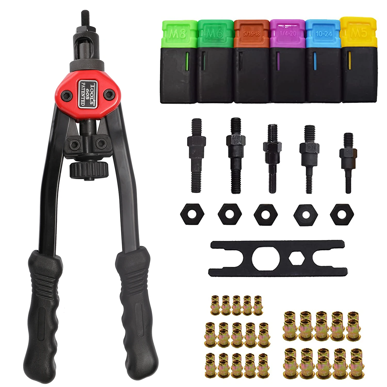 Rivet nut tool kit 13 inch manual blind riveting machine with 6 spindles M5 M6 M8 10-24 1 / 4-20 5 / 16-18 rivet nut gun rivetin original Price($) 69.04 salePrice($) 69.04
