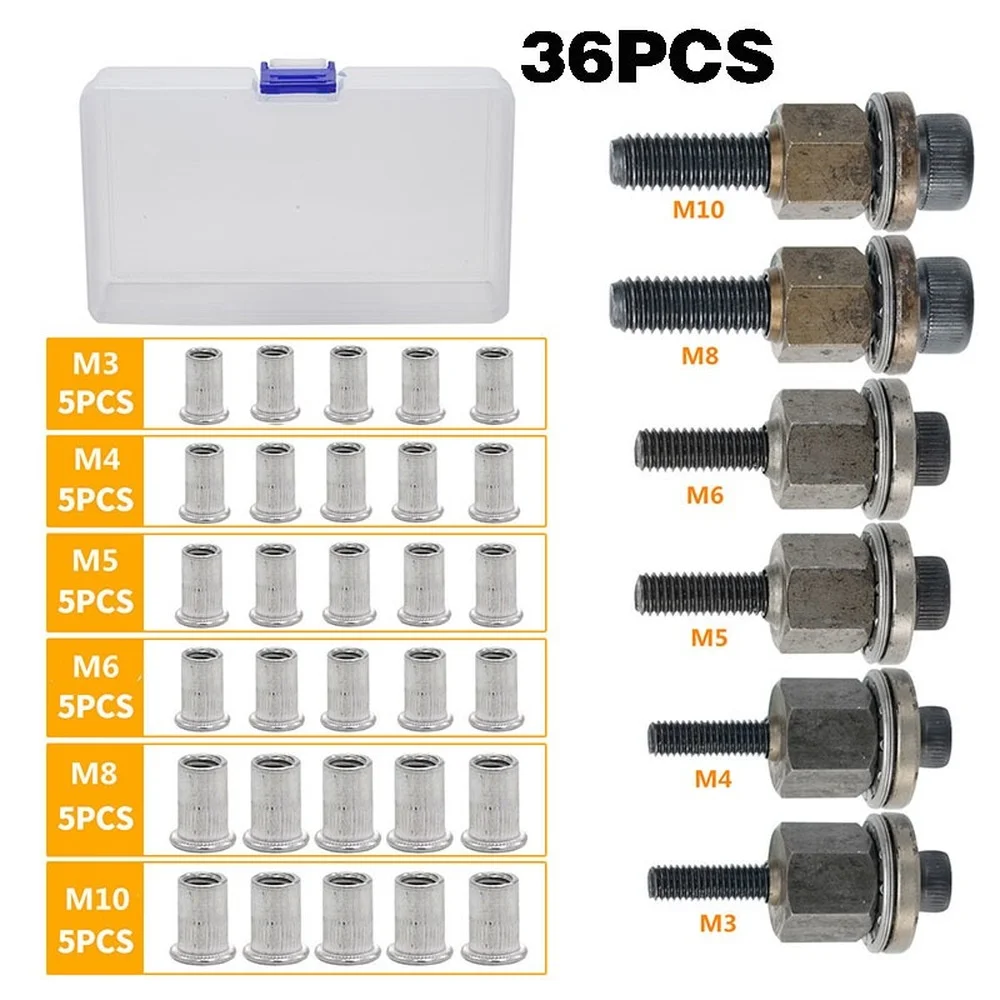 cheap!!!- Hand Rivet Gun Head Set For Rivet Nut GunTool M3/M4/M5/M6/M8/M10 Simple Installation Manual Riveter 30pcs Aluminum Alloy Rivnut