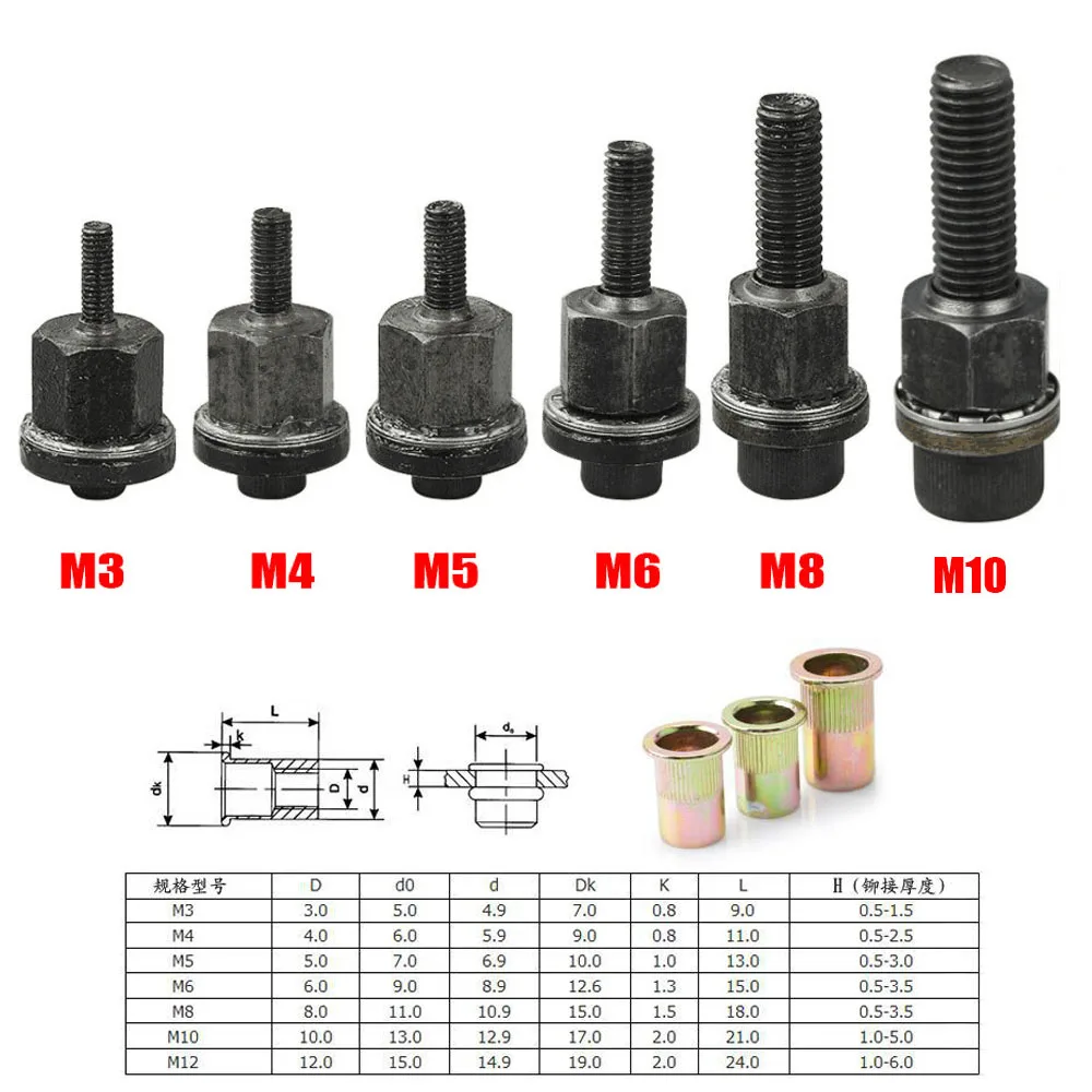 cheap!!!- Hand Rivet Nut Gun Head nuts Simple installation Manual Riveter Rivnut Tool Accessory Parts for Nuts M3 M4 M5 M6 M8 M10